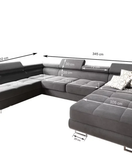 Canapé d’angle "XLuxe" en forme de U – Élégance et polyvalence pour votre salonTransformez votre salon avec le canapé d’angle "XLuxe" en forme de U. Offrant une fonction sommeil pratique et un revêtement en velours crème, il combine élégance, confort, et praticité pour un intérieur raffiné.