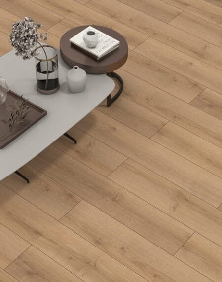 Le parquet stratifié Bora offre un design élégant avec son décor chêne authentique et une surface homogène sans chanfrein. Facile à installer grâce au système UNICLIC, il est résistant, compatible avec le chauffage au sol, et respectueux de l’environnement.