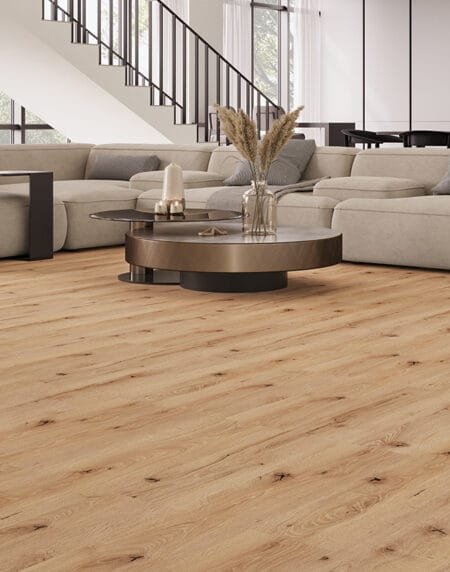 Devine Oak, un parquet stratifié de 12 mm, allie la beauté naturelle du bois de chêne à une durabilité exceptionnelle. Idéal pour les environnements exigeants, il offre élégance, robustesse, et une installation facile grâce au système UNIFIT.